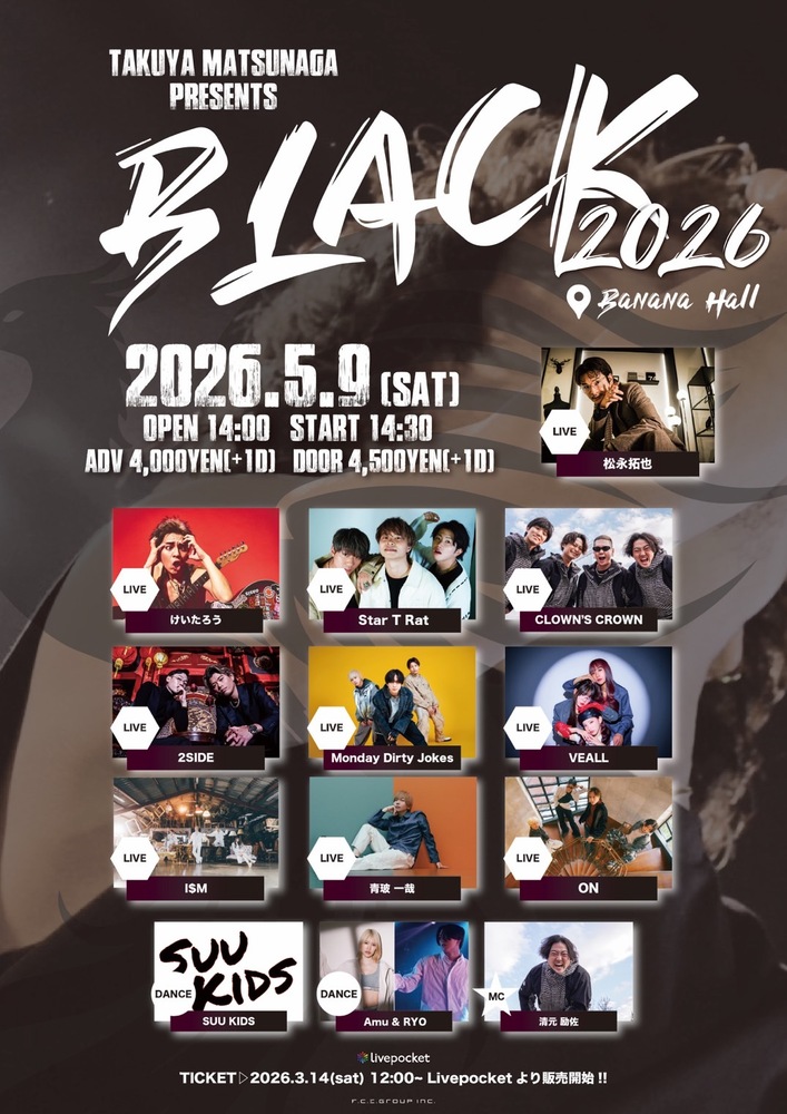 🎫前売 ¥4,000 / 当日 ¥4,500※別途ドリンク代